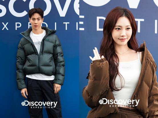 ▲ 디스커버리 익스페디션 ‘액티브 웰니스 레이브’ 캠페인 몬스타엑스 셔누(왼), 유라 (사진 제공=디스커버리)