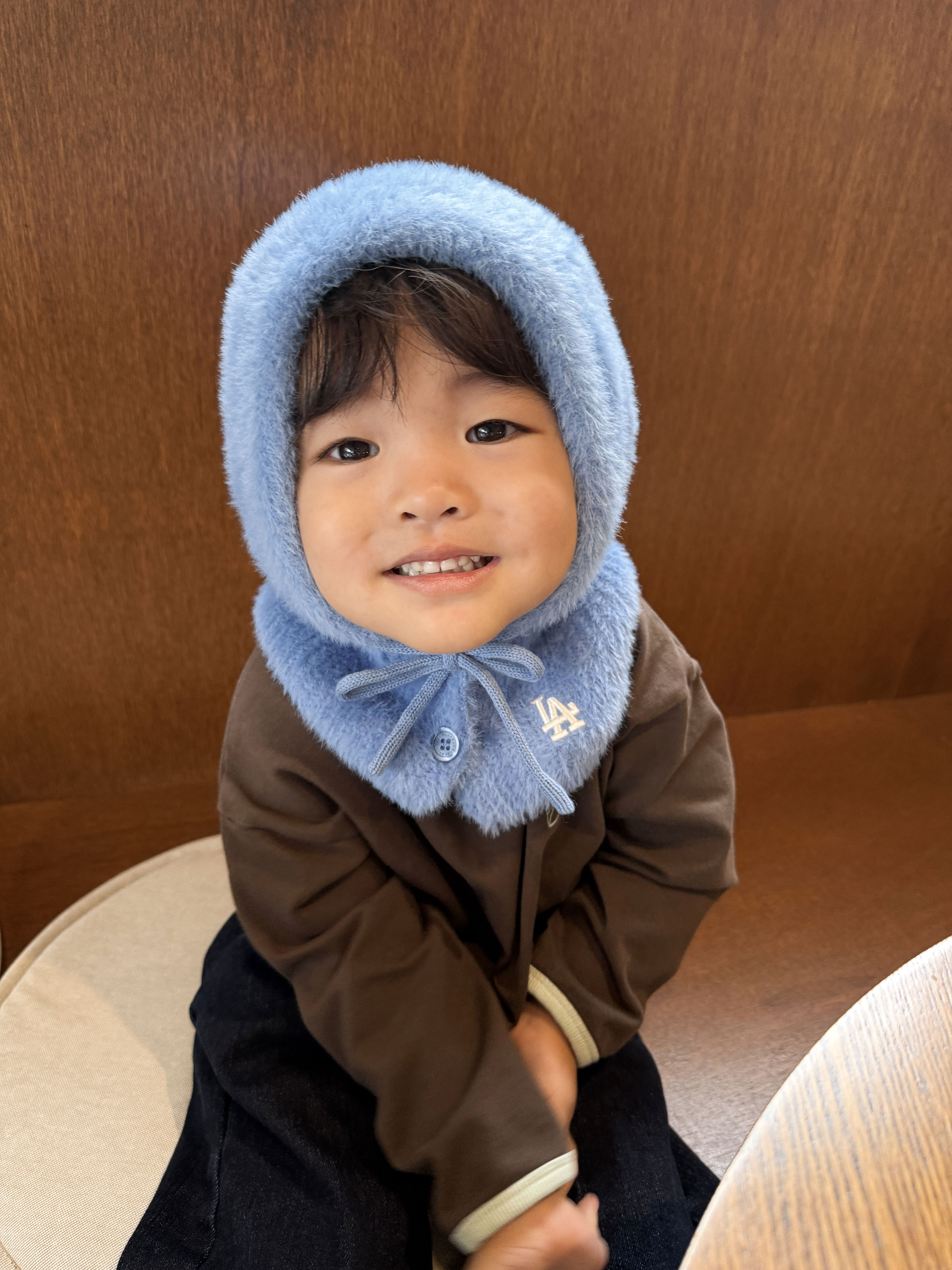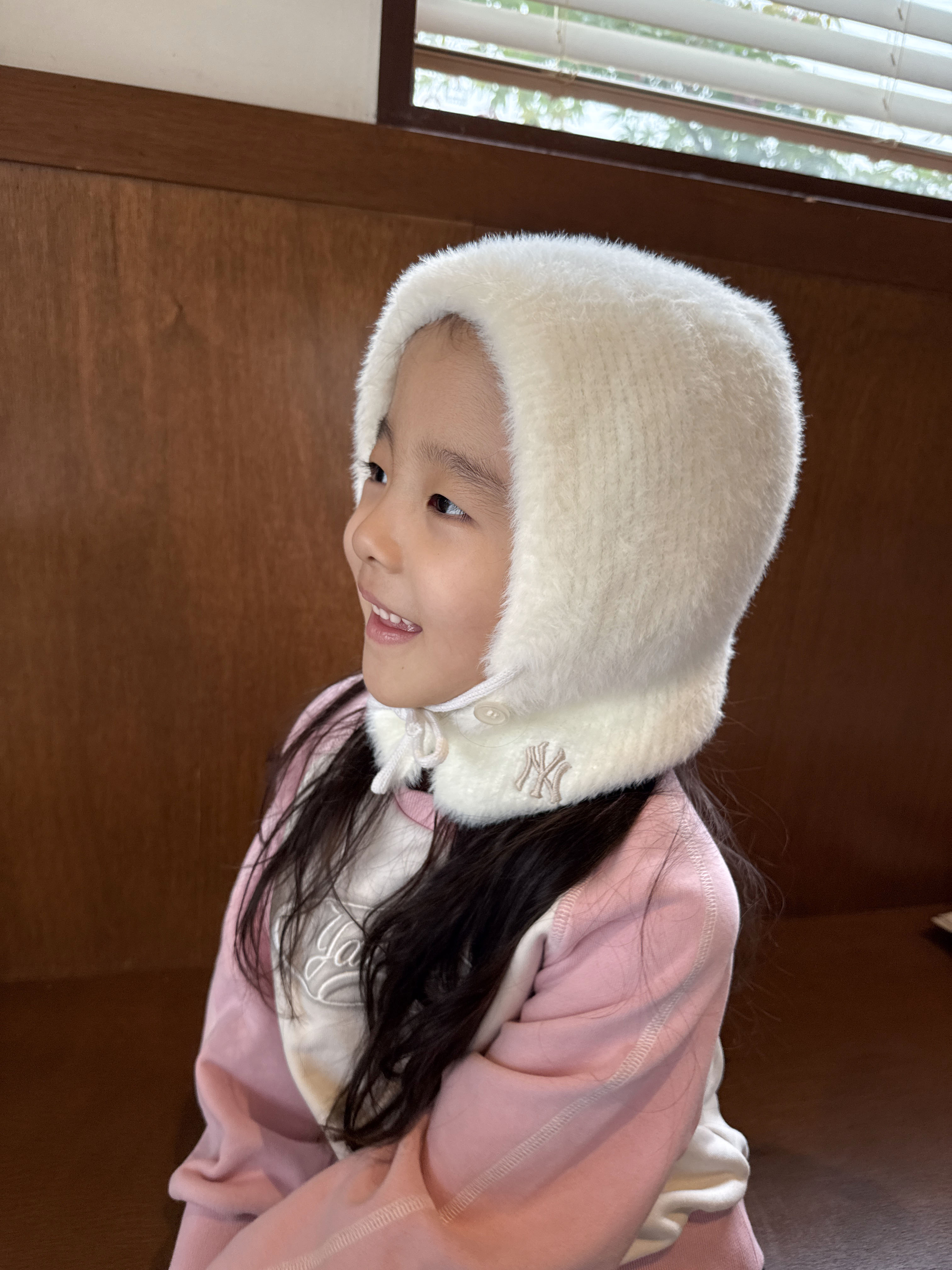 함께 매치한 ‘소프트 뽀글이 바라클라바’는 부드러운 아크릴 밍크 소재로 만들어져 피부 자극 없이 따뜻하게 착용할 수 있다. 단추와 스트링 디테일로 아이의 얼굴에 맞게 사이즈 조절이 용이하며 귀엽고 트렌디한 디자인으로 어떤 아우터에도 스타일리시한 포인트를 더해준다.