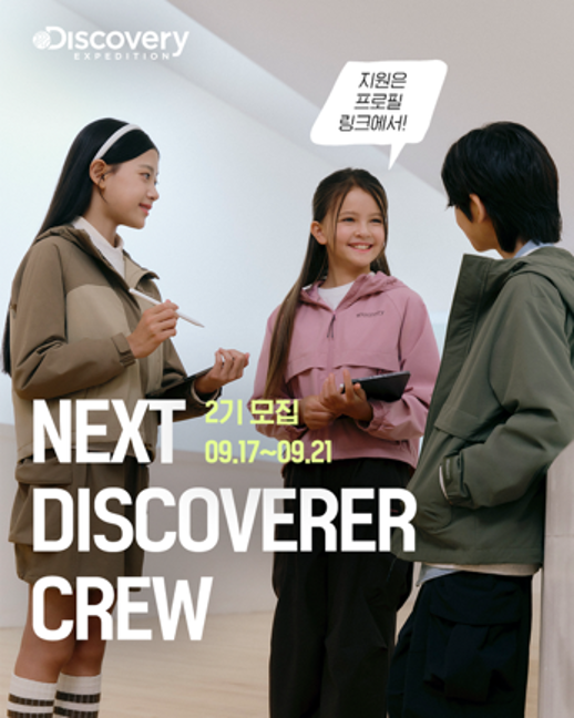 2025.09.18 프리미엄 라이프스타일 아웃도어 브랜드 ‘디스커버리 익스페디션’의 디스커버리 키즈가 브랜드의 페르소나 크루 ‘넥스트 디스커버러(Next Discoverer)’ 2기를 모집한다고 밝혔다.