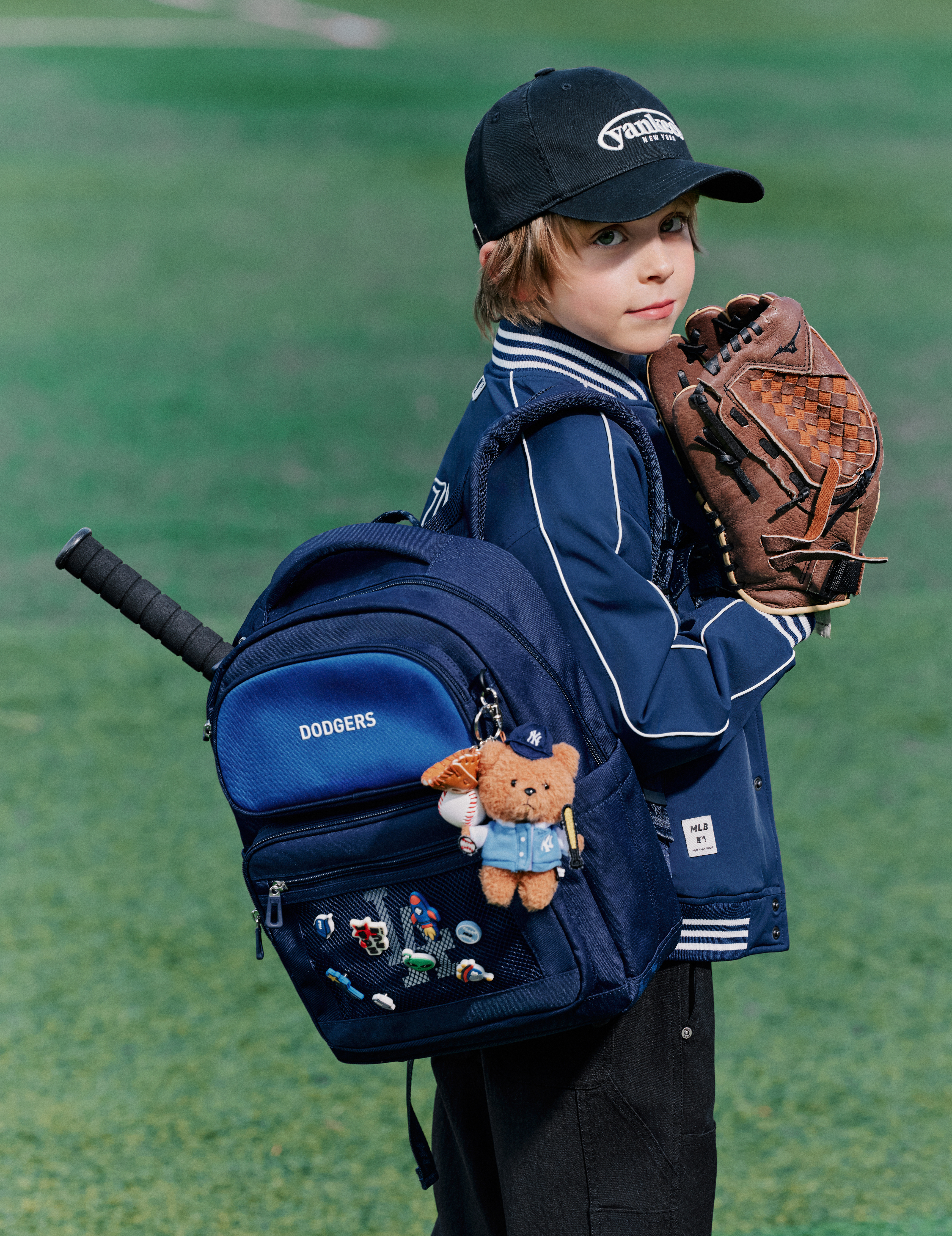 ▲ MLB키즈 ‘태그 시리즈’ 책가방 화보 (사진 제공=MLB키즈)